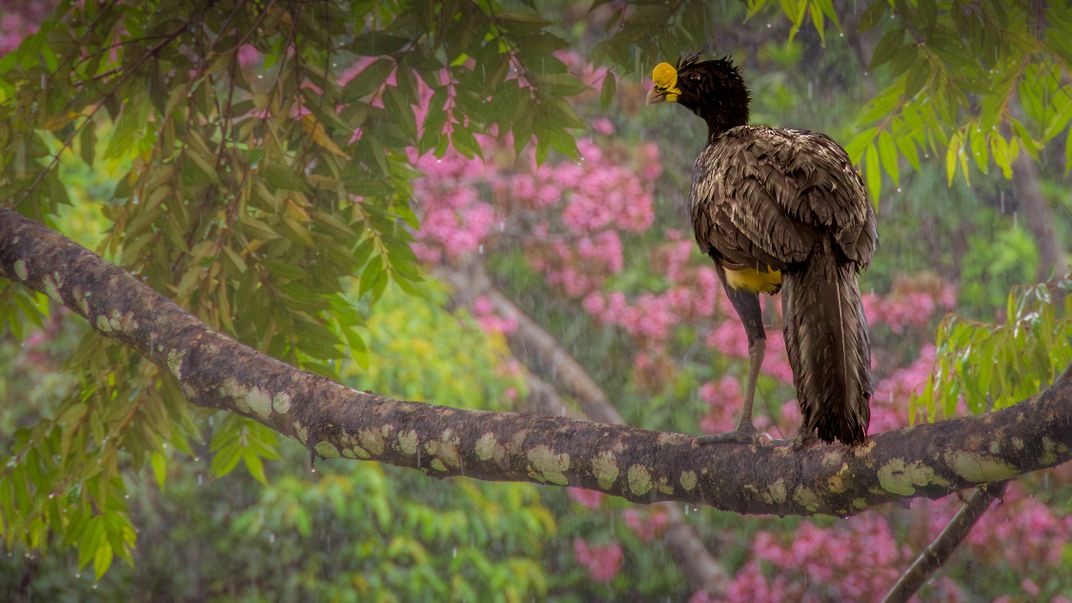 Enjoying the steady rain, this Costa Rican bare-faced curassow savored the moment.