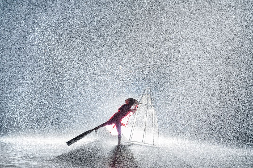 On a rainy night, a lone fisherman ventured out in his boat to catch fish. The soft glow of the rain and the quiet ripples in the water created a serene atmosphere. I captured this beautiful night scene as a photo, preserving the peaceful moment of nature and solitude.