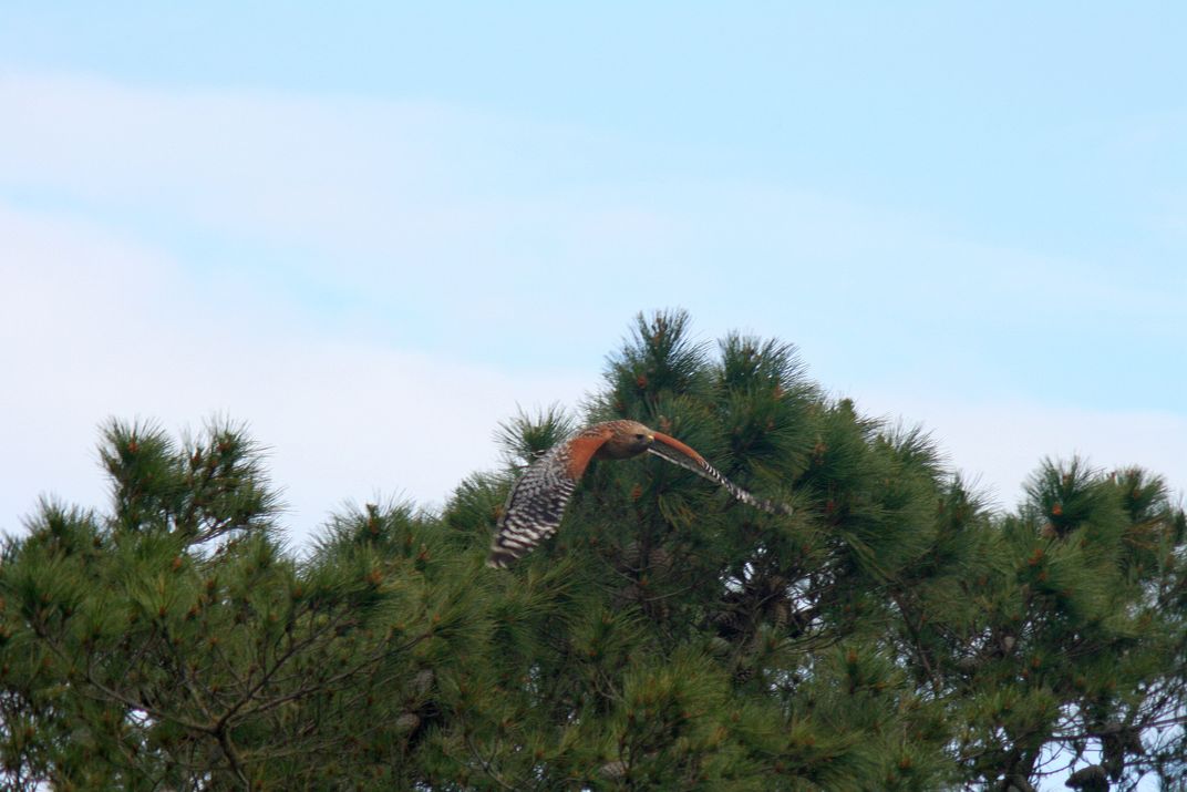 Raptor flight above the trees