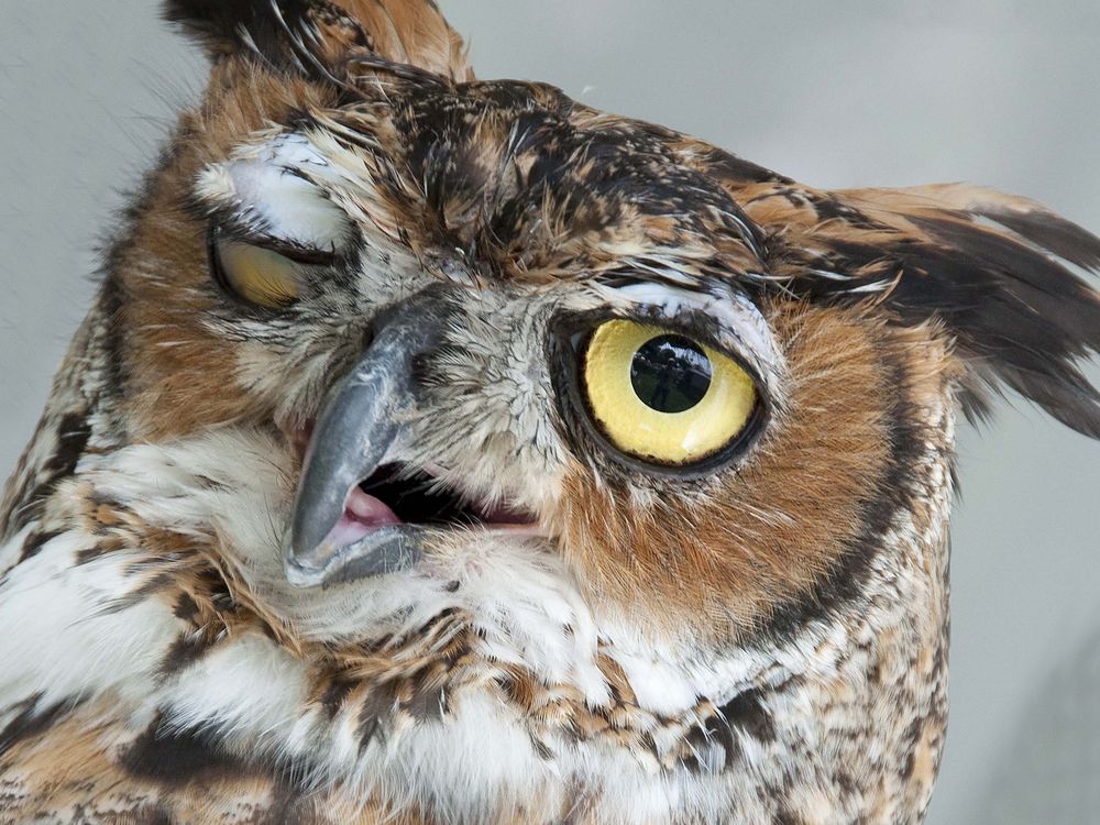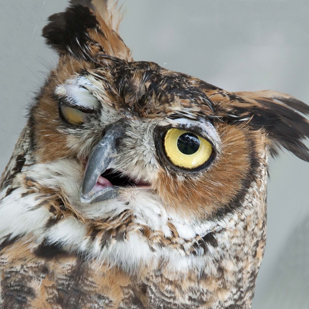 Raptor on exhibit at the county fair. Took over 100 shots; four had one eye closed as if he was blinking. Thai's me in the reflection in the open eye.