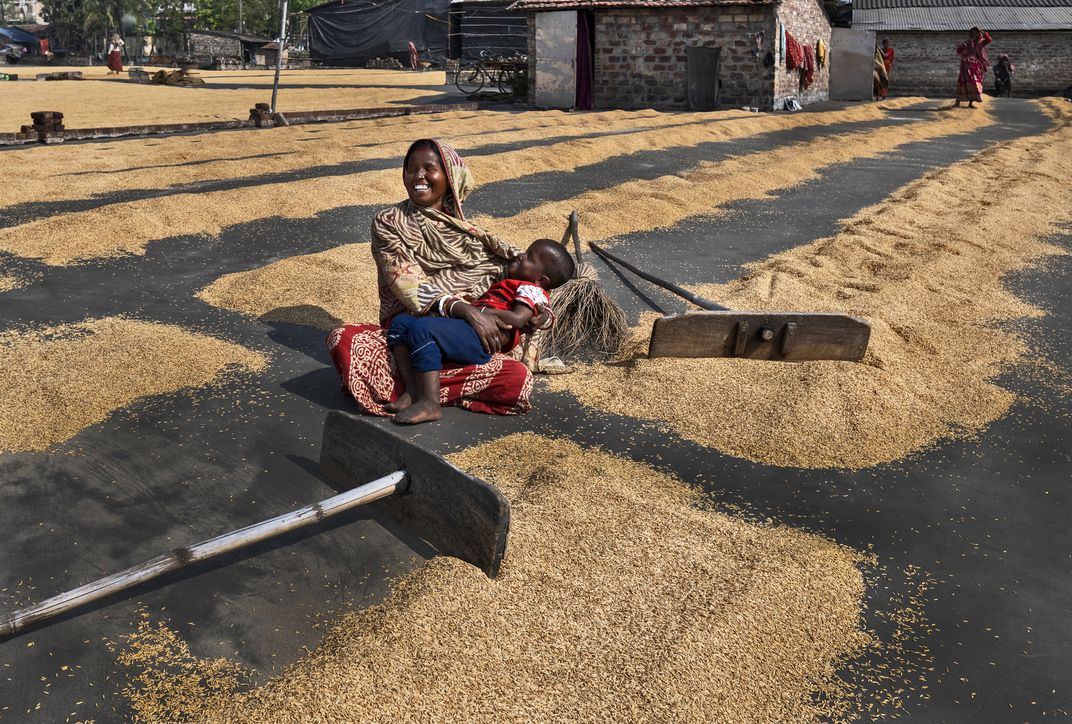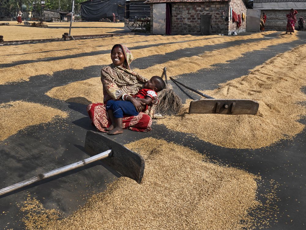 After drying the Paddy, mother is having a little cuddle and affection with her son.After a hard day's work, this care and love makes her forget all his hard work.