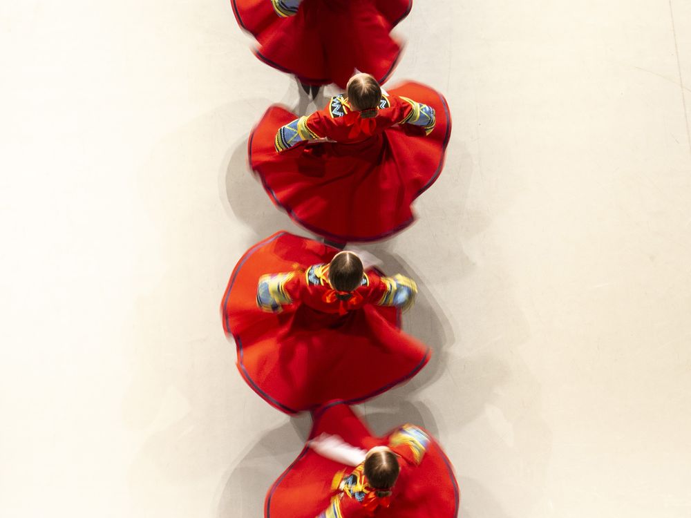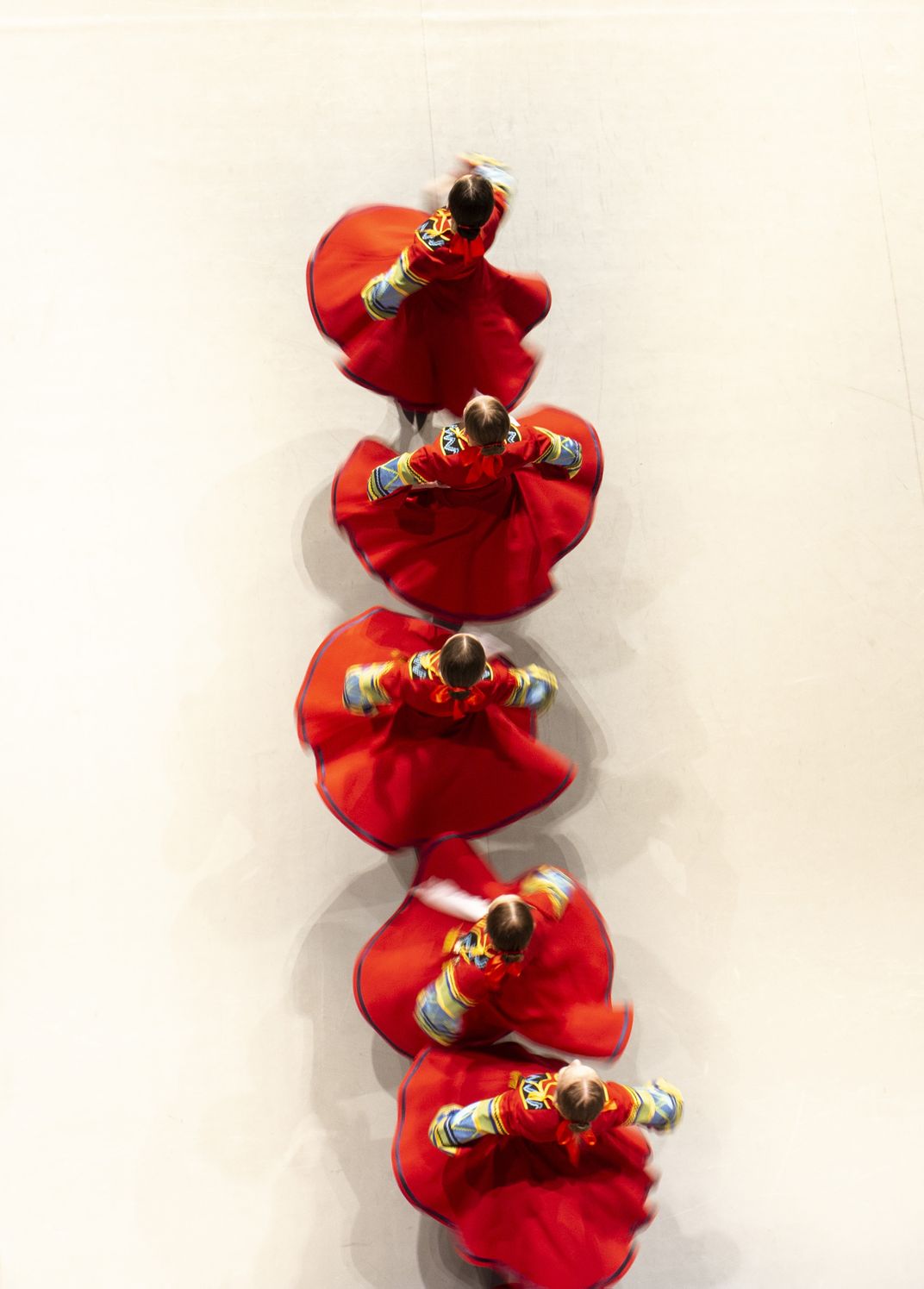 Folk costume in dance and with a long exposure, creates the effect of flowers