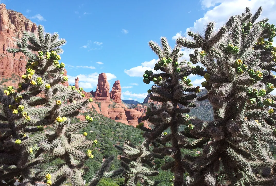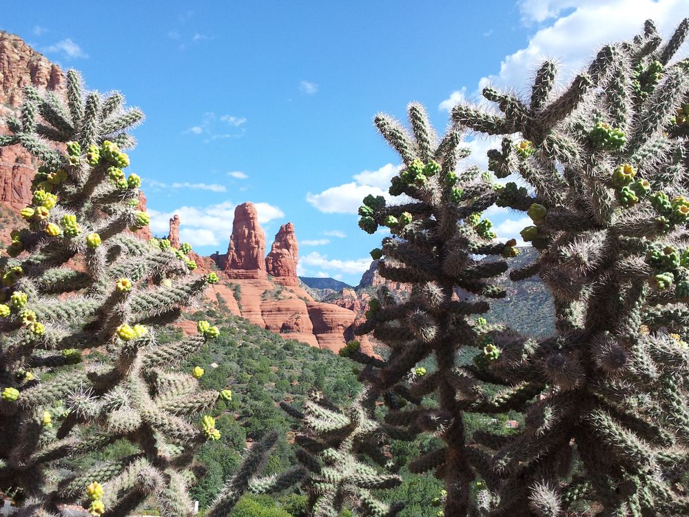 Red Rock Peaks and Cactus Blooms in the dessert near Sedona, Arizona