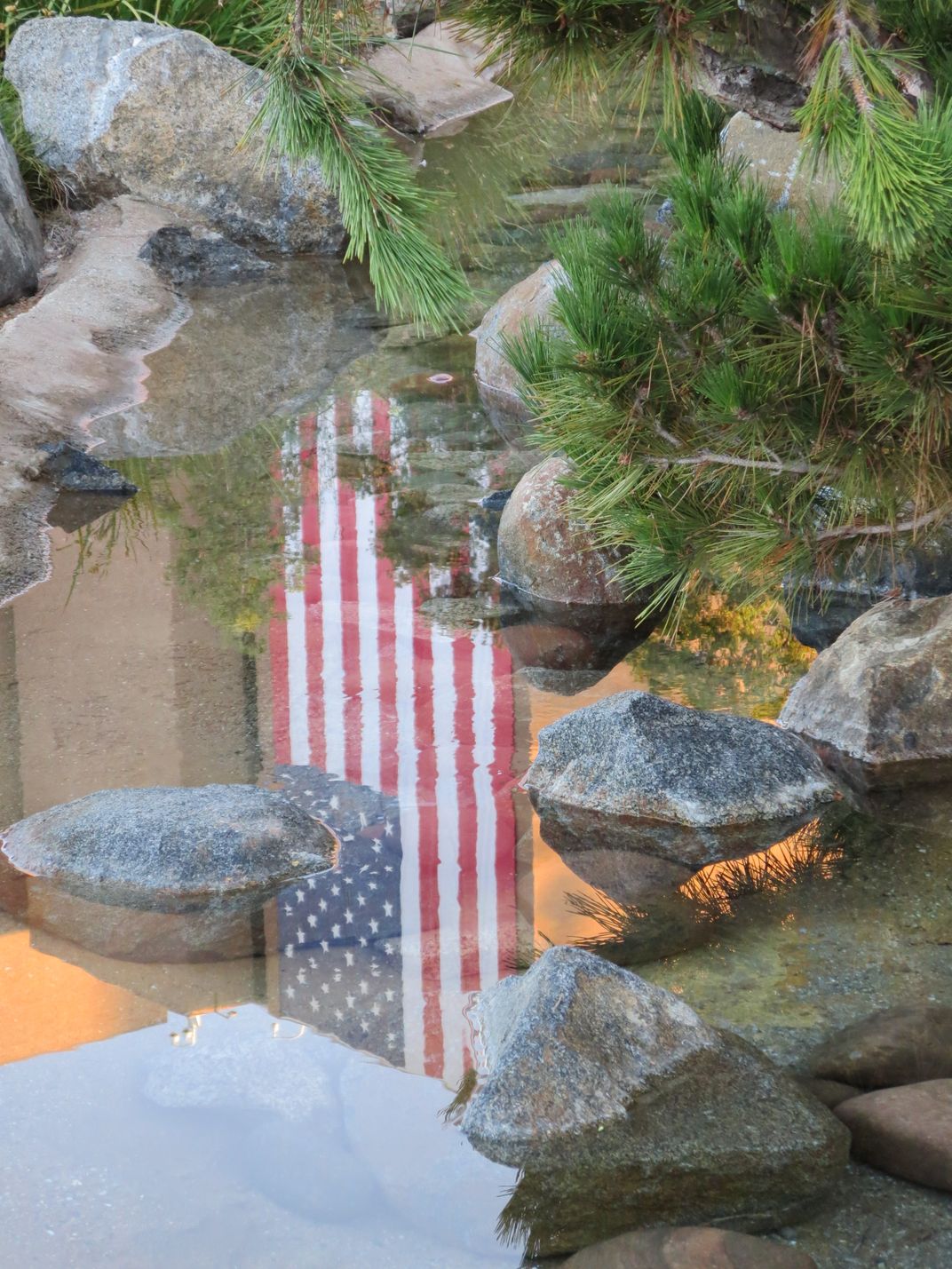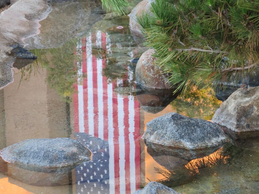 This huge U.S. flag reflection was captured on September 11th as it was displayed draped down the side of city hall in El Cajon.