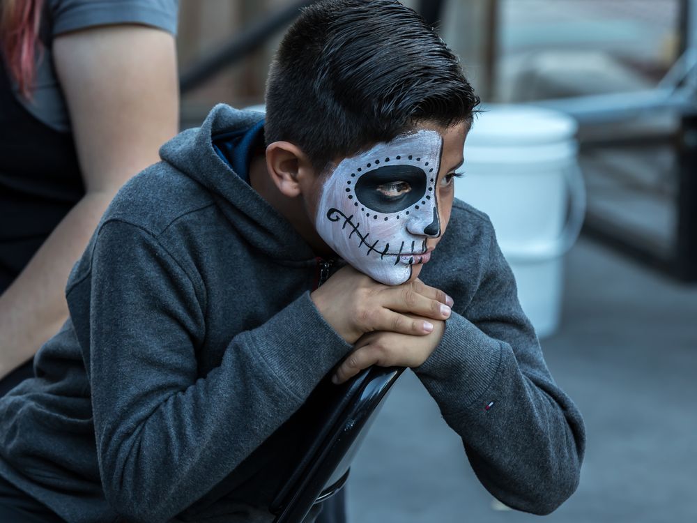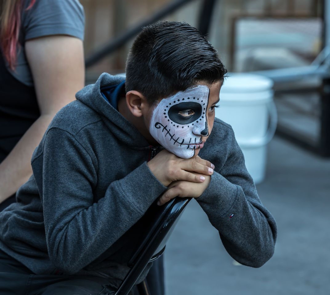 Youngster relaxing after having his face painted for Tucson's annual All Souls Procession