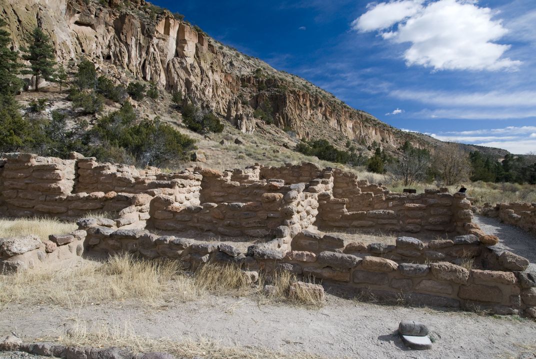 Remains of an ancestral American pueblo in what is now known as Bandelier National Monument. The original dwelling was three stories high and housed a population of about 400. Hiking Bandelier provides rich insight into ancient American history.