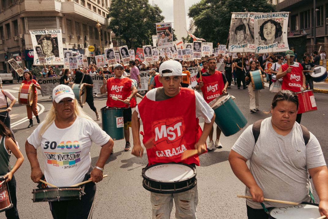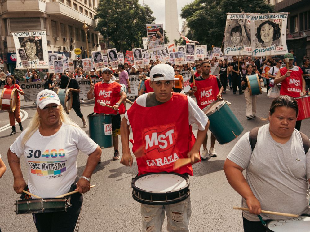 Socialist activist marching at the National Remembrance Day, Buenos Aires. The faces on the banners are of those comrades killed or disappeared during the last dictatorship in Argentina.