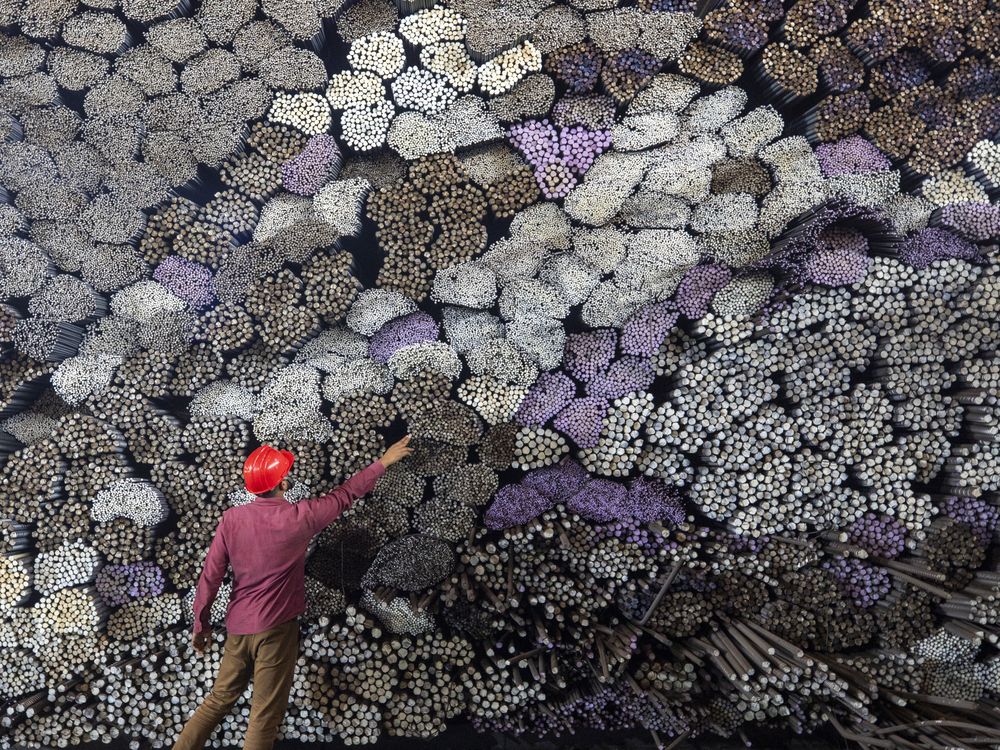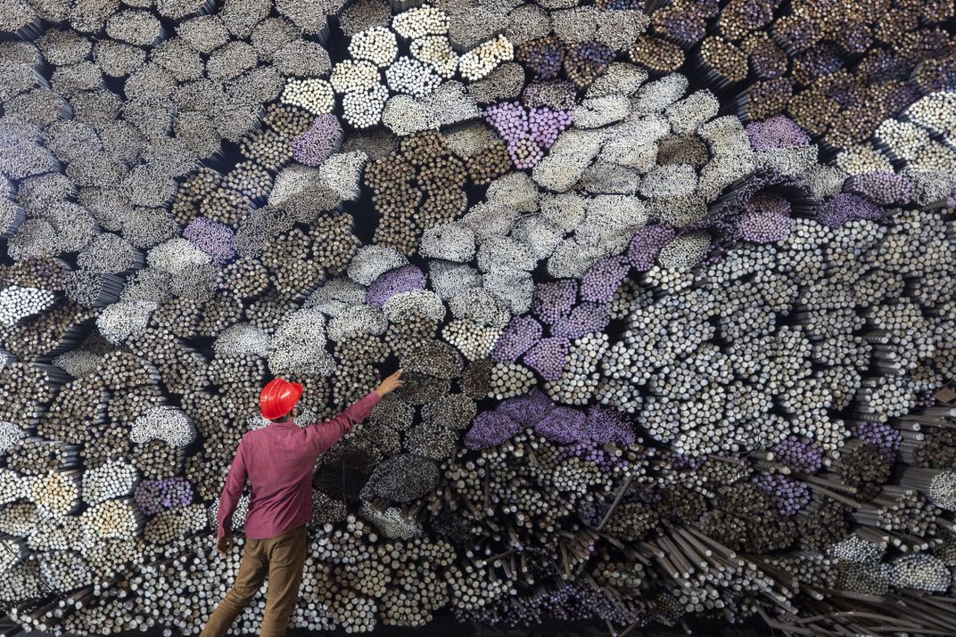 Colorful steel rods, meticulously graded and arranged, are born from the remnants of decommissioned ships, showcasing the circular economy in action. This image captures the transformation of discarded vessels into valuable resources, contributing to sustainable industrial practices in Chattogram. This photograph was taken on January 29, 2024, at a factory in Sitakunda, Chattogram, Bangladesh