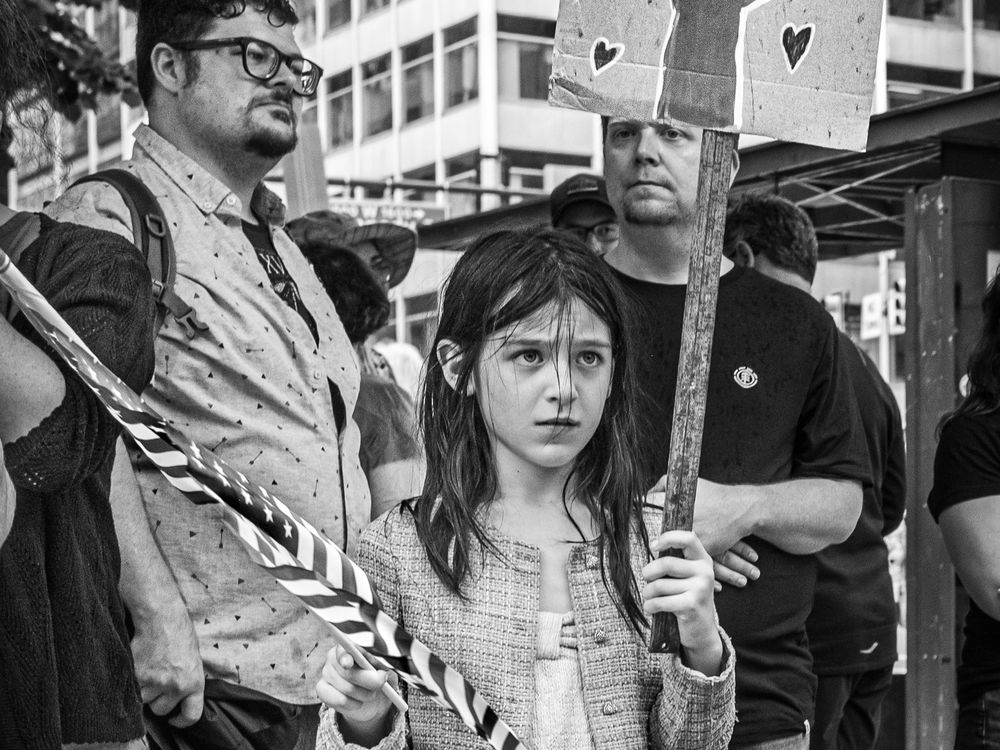 A young girl protesting at the first No Kings rally in Philadelphia, Pennsylvania.