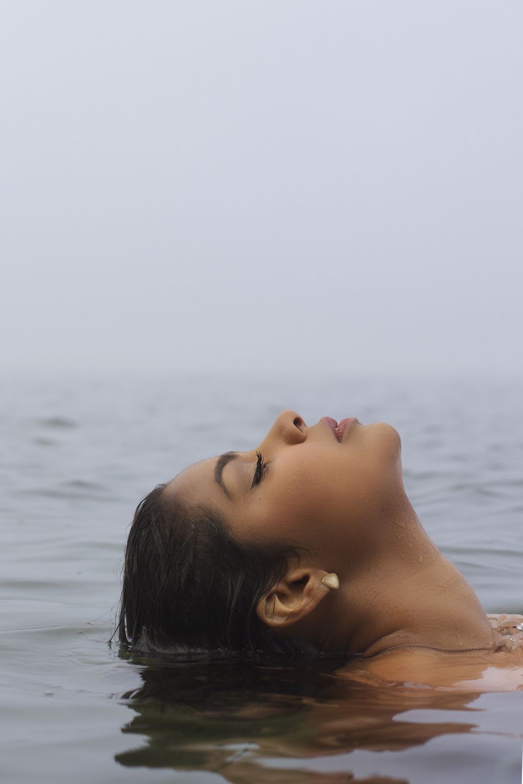 A photo of my dear friend from Oxford University, Aspen Plummer, wading in the water of Washington Lake in the early morning amidst the fog - capturing the beauty of the subject and the nature of the Pacific Northwest in a collaborative piece of nature and lifestyle.