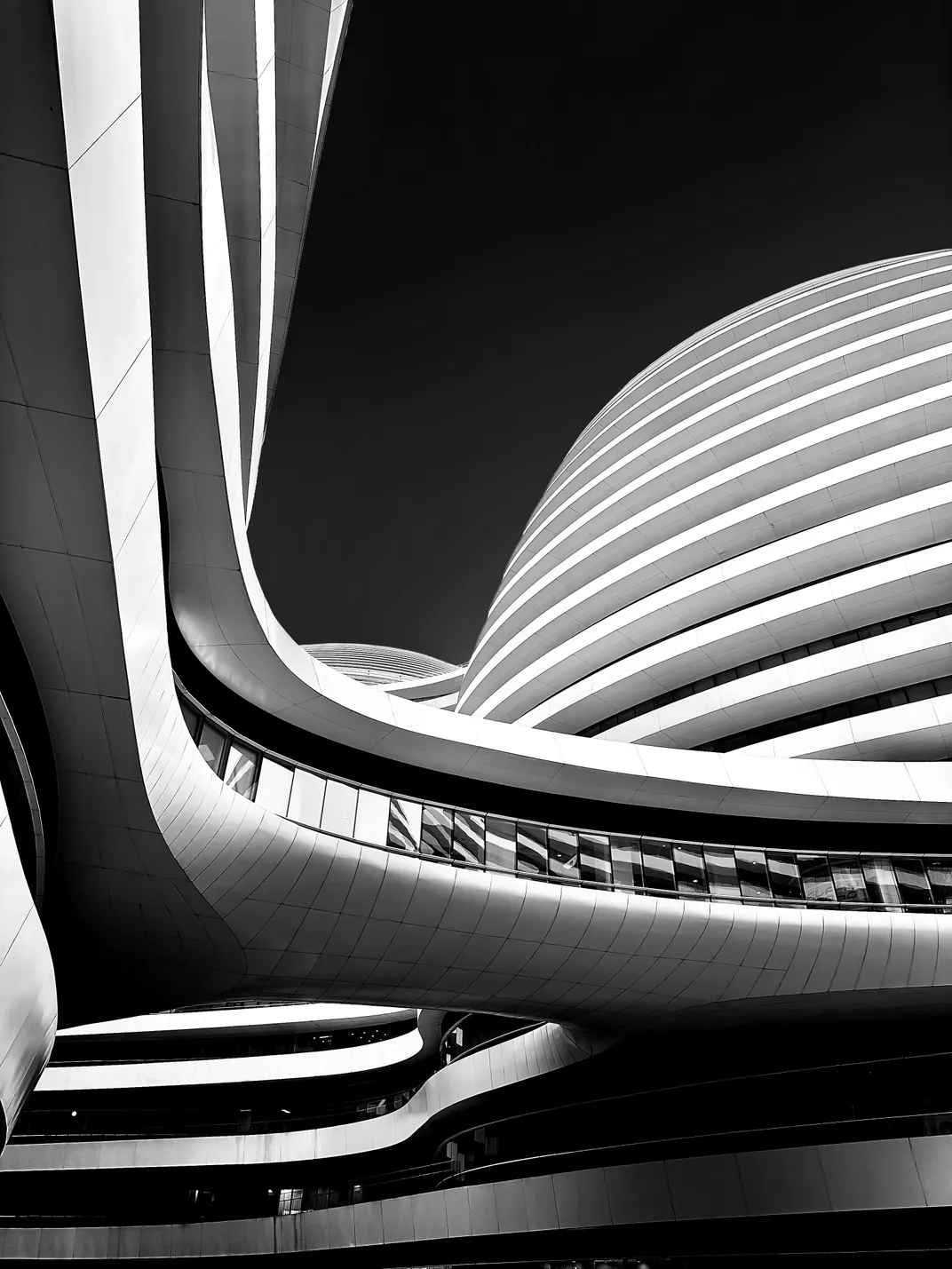 In this photo, I captured a part of the Galaxy SOHO building in Beijing. I called it "Rhythm" because the futuristic architecture and the smooth lines of the facade reminded me of dance. While choosing the angle for the photo, I wanted to convey this dance and the rhythm of the lines.