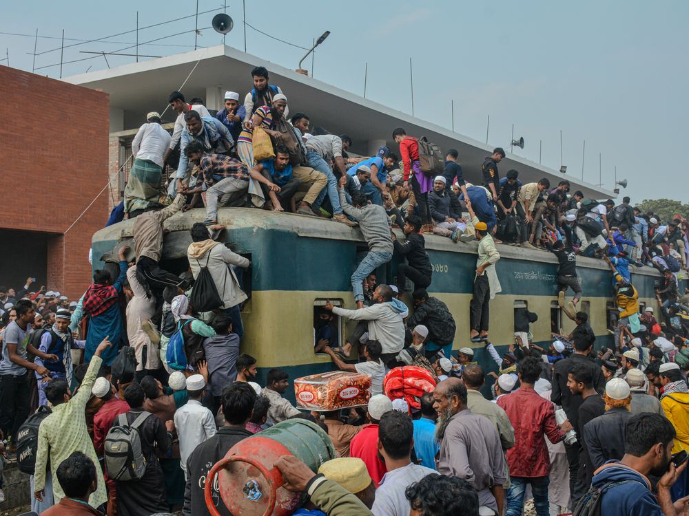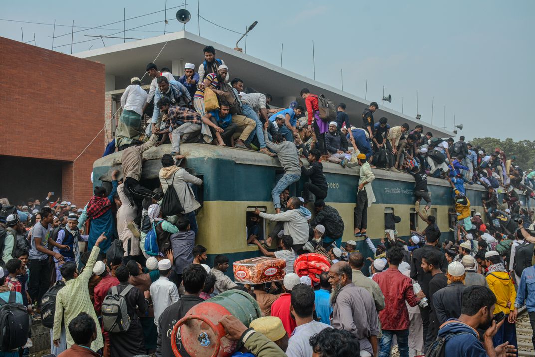 During the Bishwa Ijtema in Tongi, Bangladesh, thousands of commuters and pilgrims struggle to find space on overcrowded trains. With limited transport and no available seats, many risk their lives by standing on rooftops, clinging to the sides, or even trying to climb in through windows just to return home. I captured this moment of chaotic determination and faith in 2023, as around 8,000 to 10,000 people tried to board any train they could — some even leaping from one moving train to another.