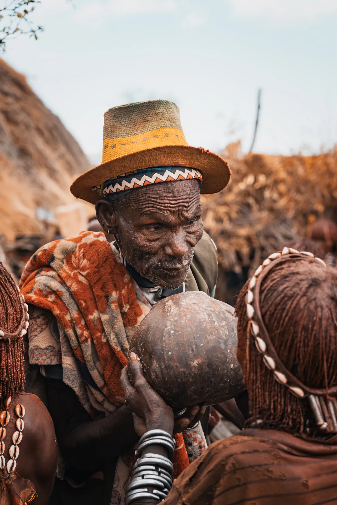 Before the bull-jumping ceremony, family members offer a traditional drink to visitors, a gesture that marks belonging, respect, and shared celebration. This moment captures the rhythm and symbolism woven into the community’s cultural life.