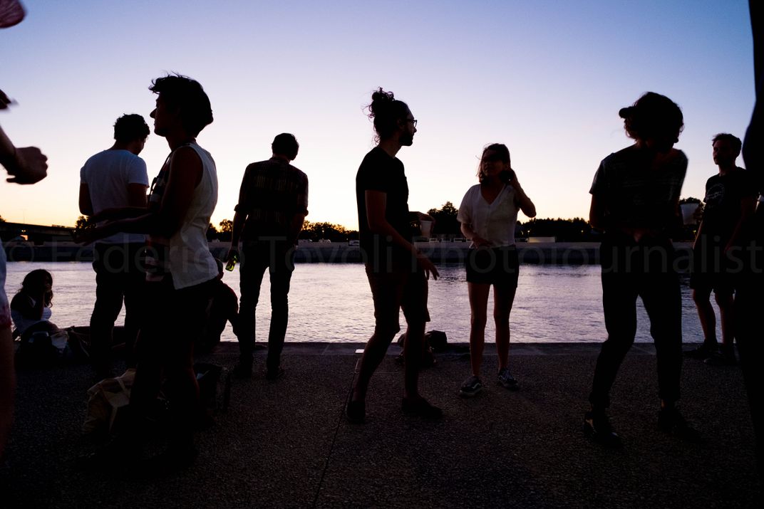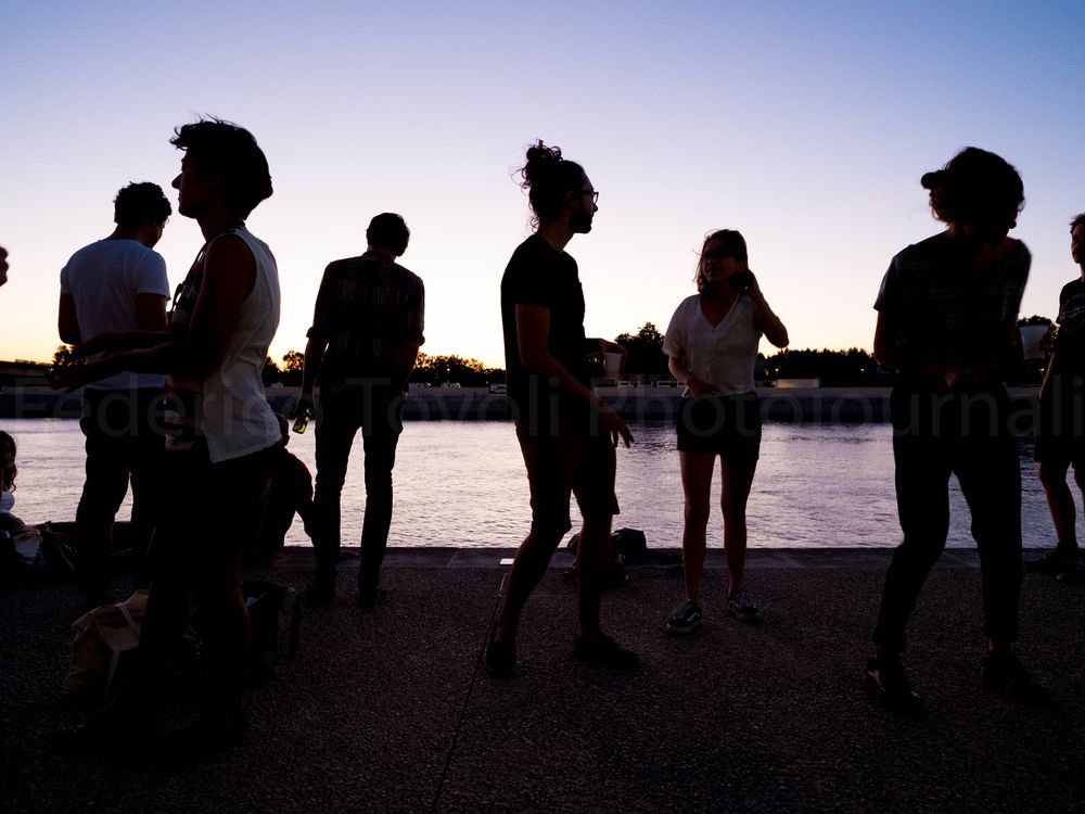 Young polish people dancing along the Rhone river in Arles