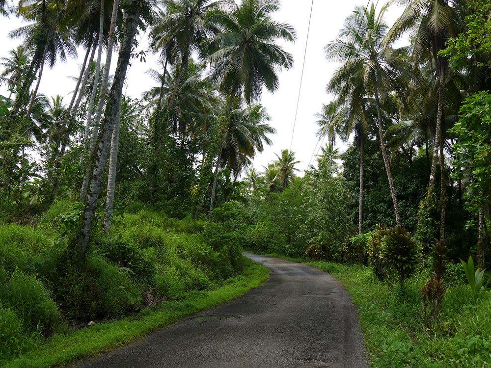 Road on Temwen Island, close to the basalt ruins of Nan Madol ...