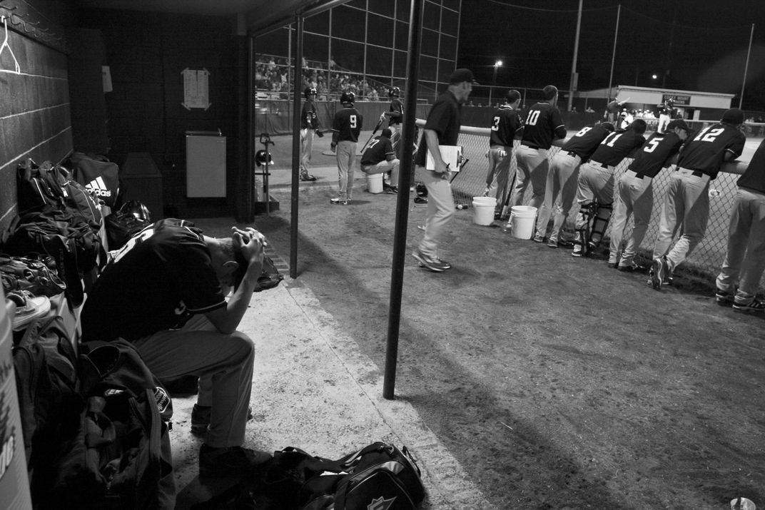 Rocky Mount NC - A pitcher ponders a losing High School baseball game against a rival team.