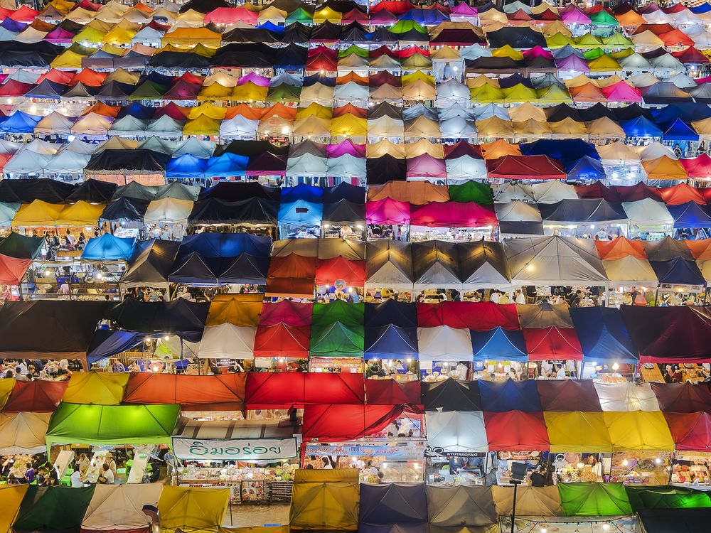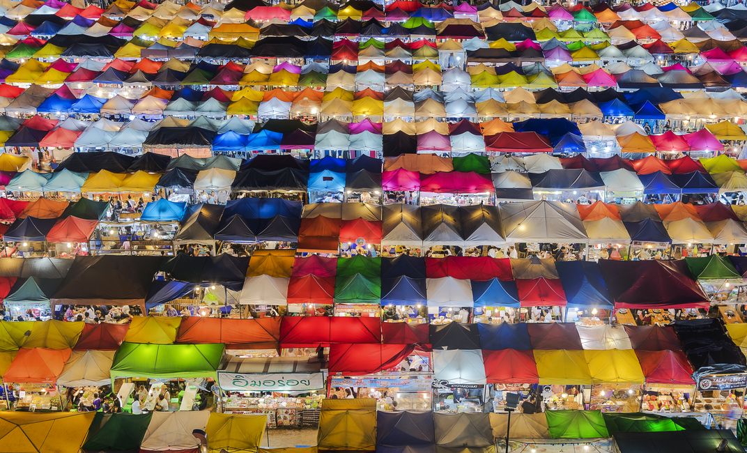 The new Rot Fai Market is an open air bazaar in the Ratchada area of Bangkok.One of the most colourful markets selling food, fashion and some antique collections.