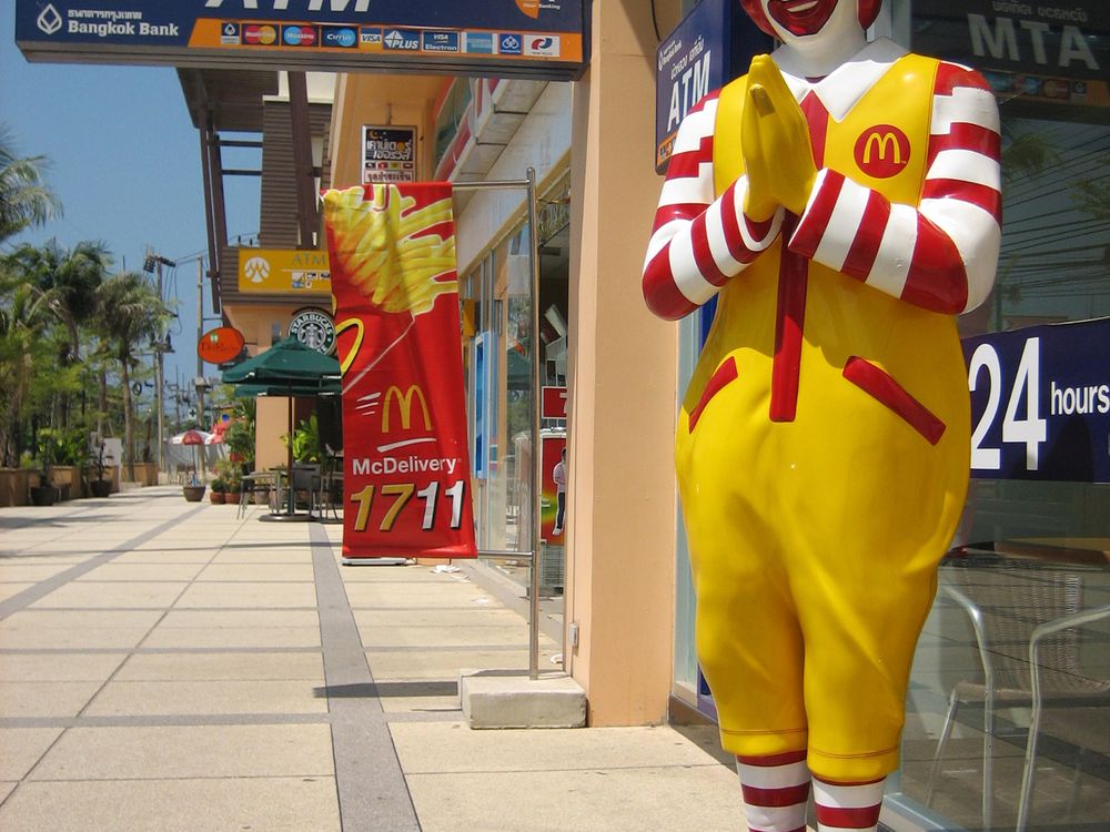 Ronald McDonald making the Thai "wei" sign in Ao Nang, Thailand