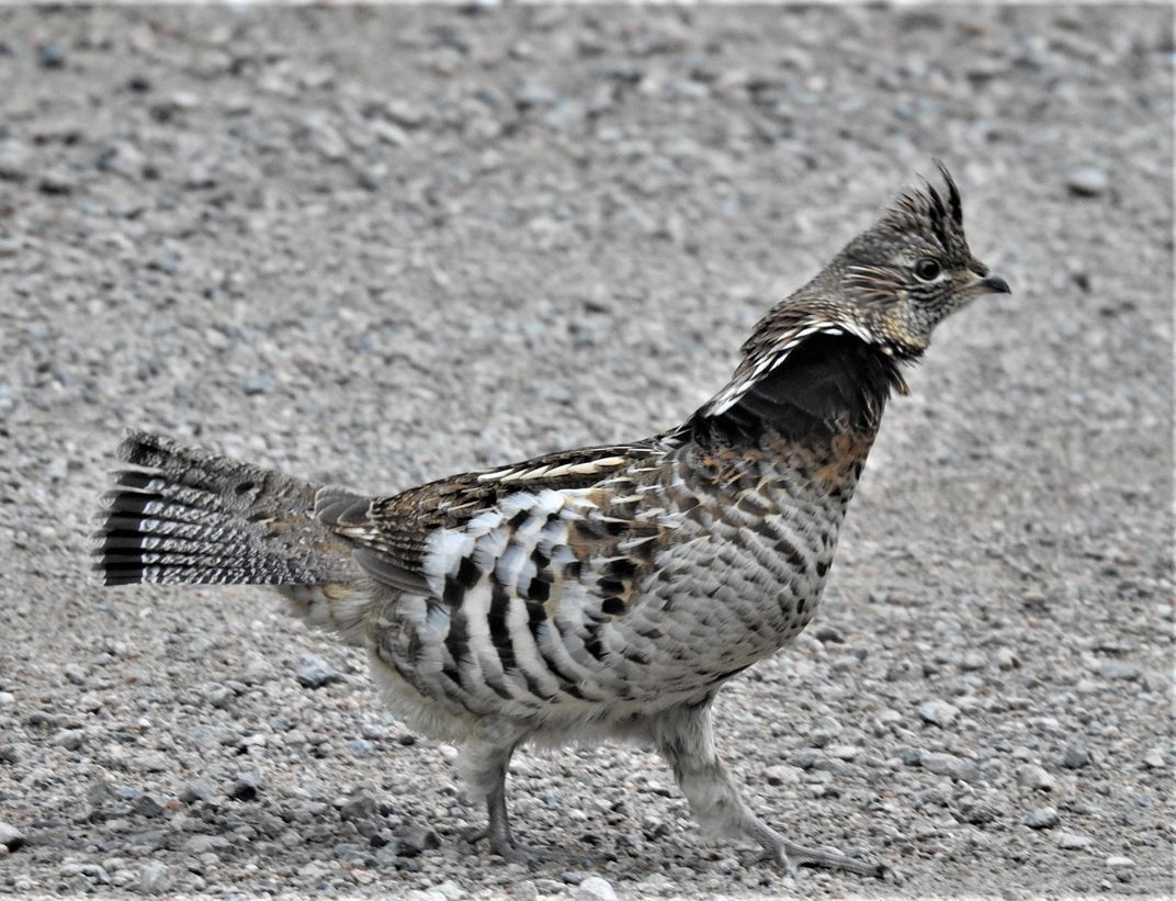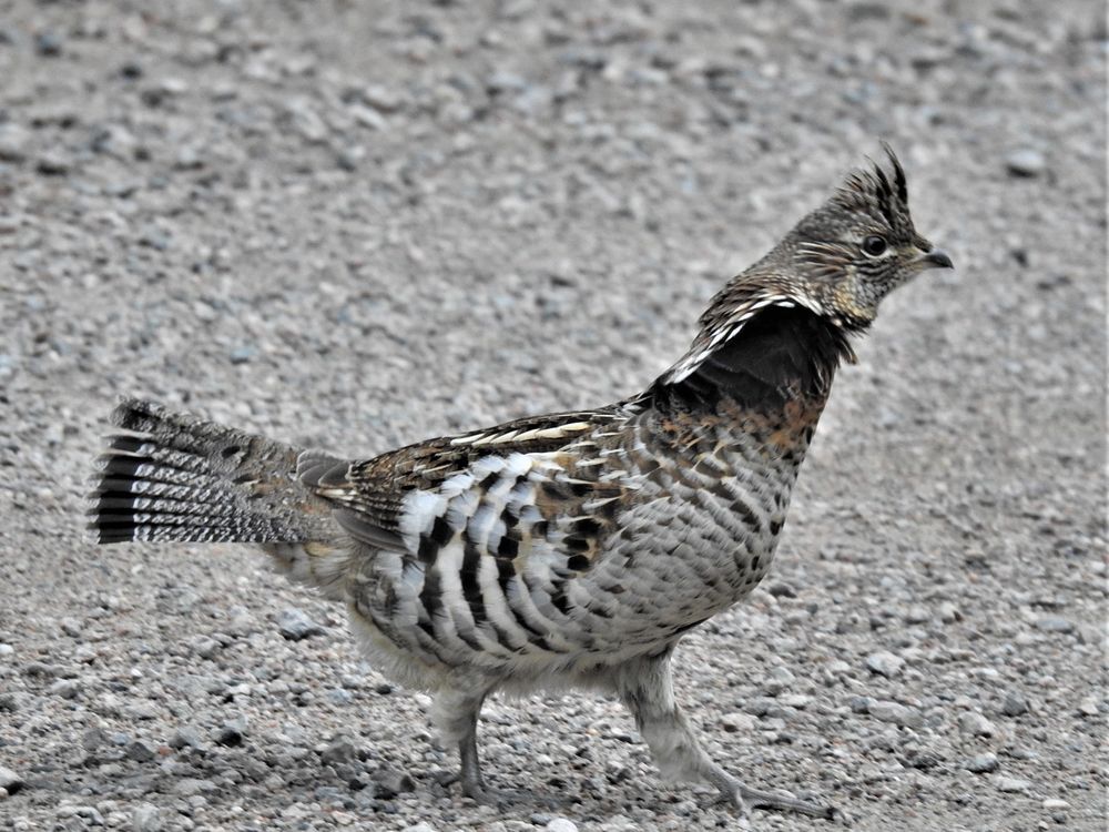 Rough Grouse crossing the road in Algonquin Park