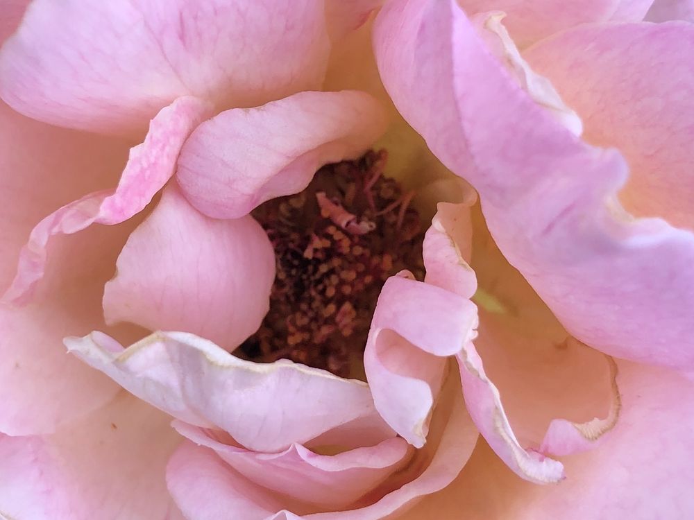 This rose was the last bloom on my rose bush in Arizona. I love how the ruffles are so erratic and how they partially hide The center.