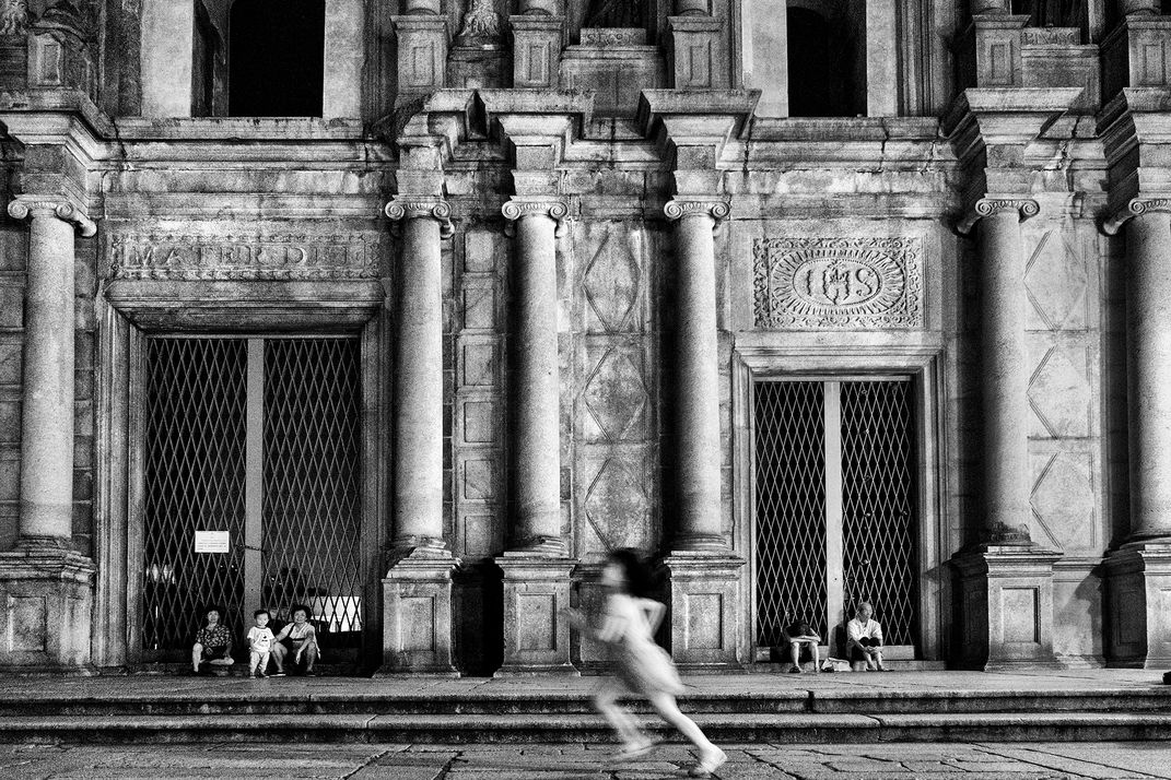 A little girl ran passed while the photo was taken at Ruins of St. Paul's, Macau.