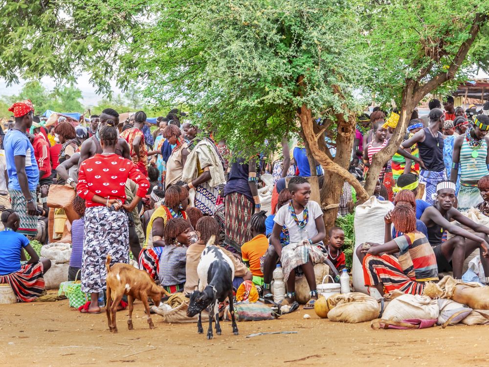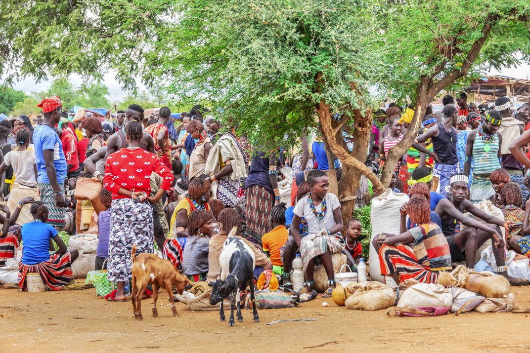 This is a scene of Harmer's bazar at Turmi village. Minority Harmer people sell and buy goods at the bazar held twice a week.