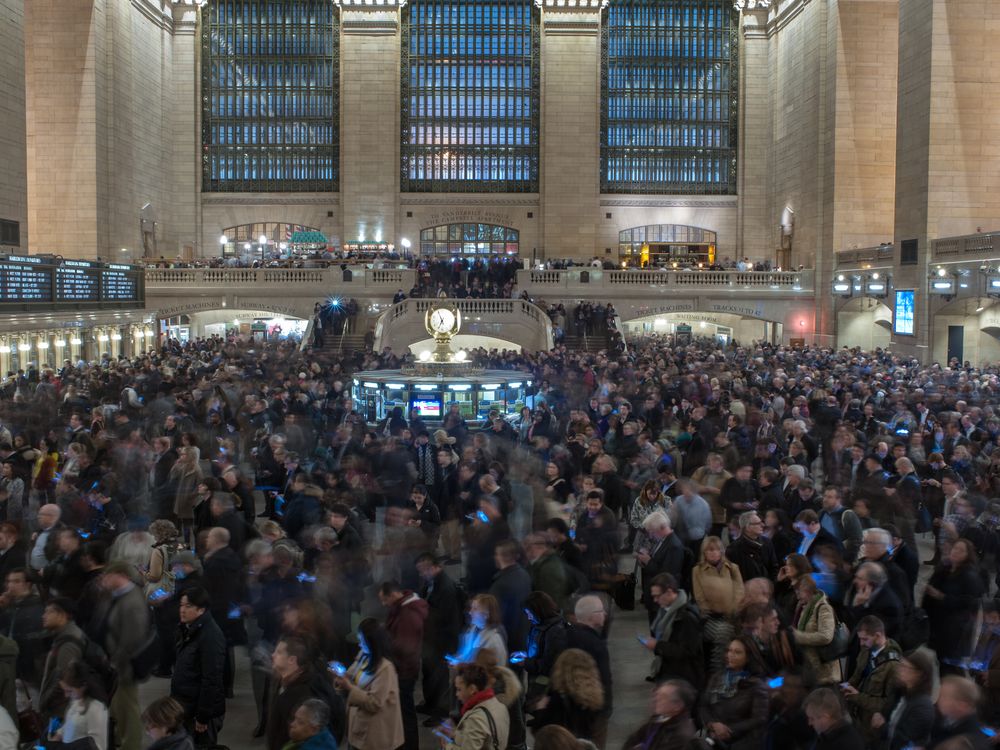 There were some massive delays from New York's Grand Central Station. The commuters were completely stuffed into the main hall of the station, many reading about the cause of the delay.