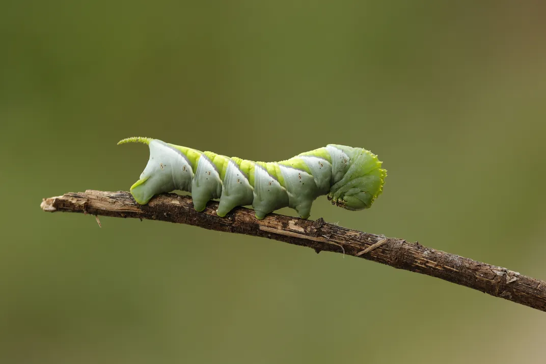 Rustic Sphinx Moth caterpillar on a small twig, during peak moth fall activity in Florida.