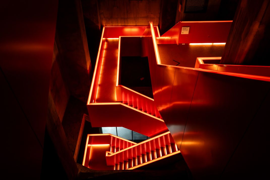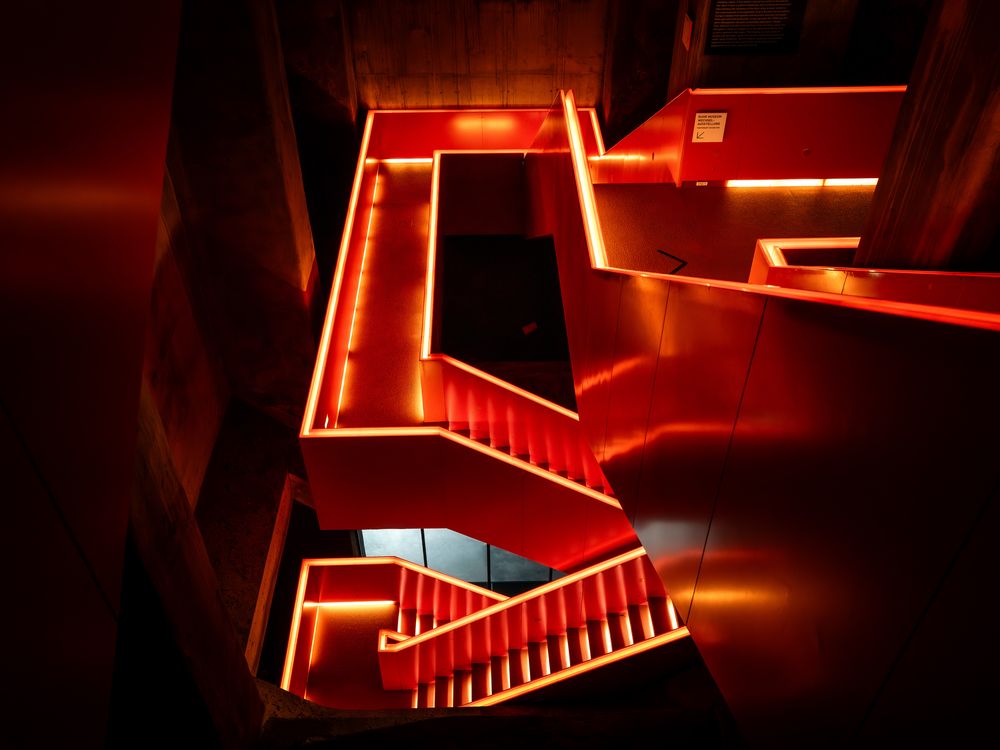 The orange staircase is part of the Ruhrmuseum in Essen, Germany and a very popular location not only for friends of architecture but also for photographers.