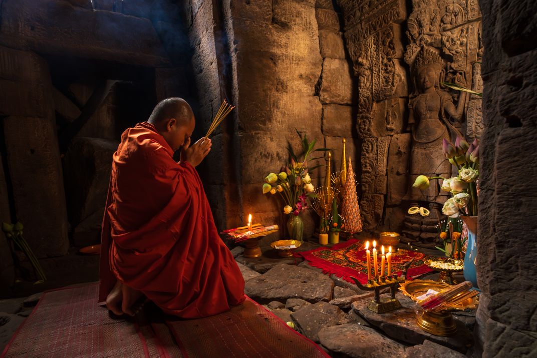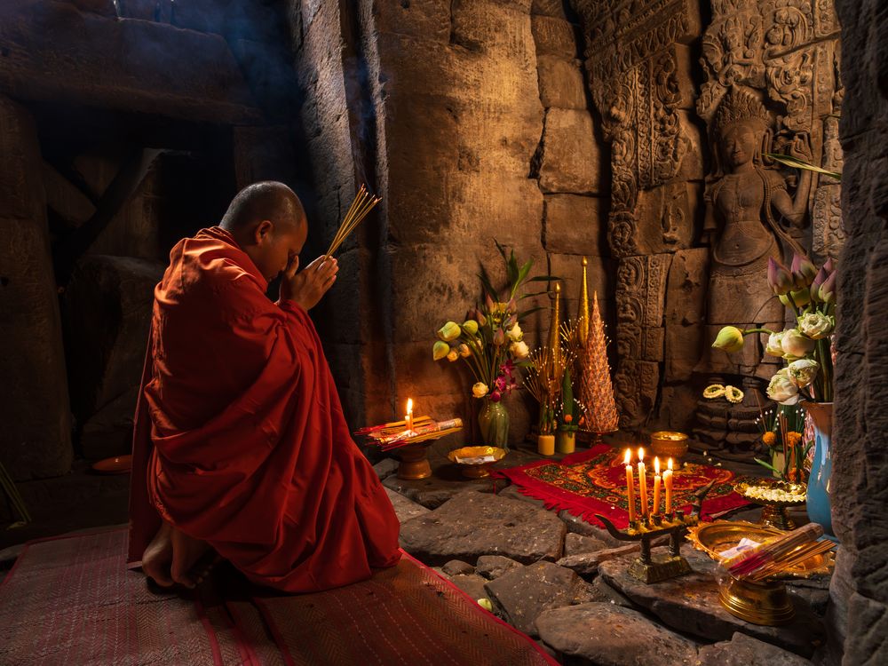 Amid the ancient stones of Angkor Wat, incense and candlelight illuminate a timeless ritual. A serene moment of devotion in Cambodia’s spiritual heart.