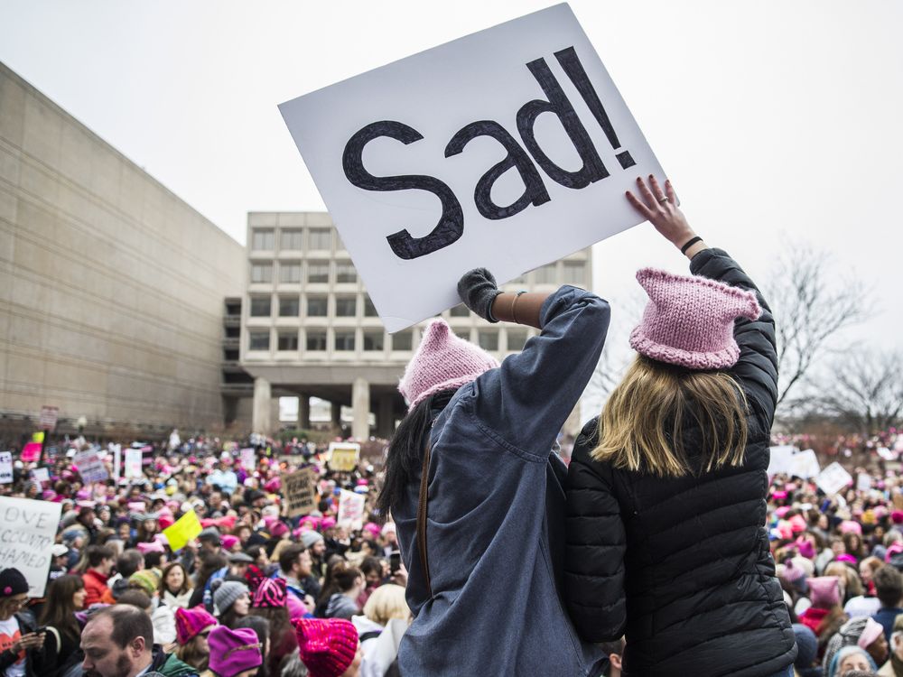 Protesters gather on Independence Avenue during the Women March on Washington on January 21, 2017.