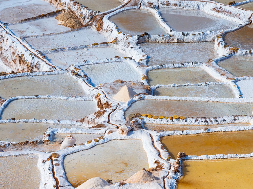 An intricate patchwork of salt ponds covers the slopes at Maras, in Peru’s Sacred Valley. Thousands of shallow, man-made pools—fed by a subterranean saline stream—form a geometric mosaic across the hillside, gleaming white and ochre under the sun. Used since pre-Inca times, these terraces are managed by local families who harvest precious salt through evaporation, creating a landscape that is both functional and mesmerizing in its rhythmic beauty.