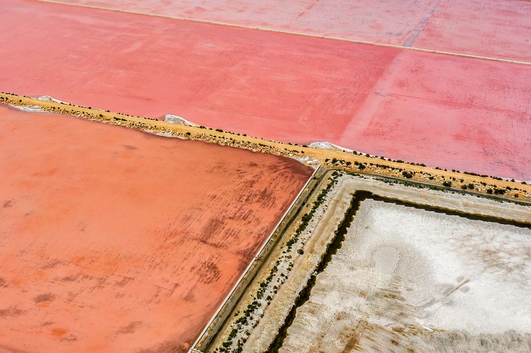 Salines d'es Trenc. Salt flats in Mallorca. Colors and lines create abstract geometric natural art.