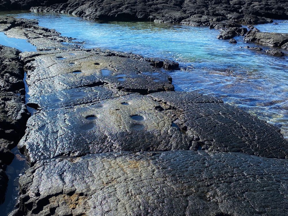 Native Hawaiians carved shallow basins or wells into lava rock at the shoreline to capture salt at low tide. Salt, or Pa’akai was used to preserve food, for medicine and for cultural and religious practices. These lie within the Pu’uhonua O Honaunau National Historic Park, Honaunau, Hawaii.