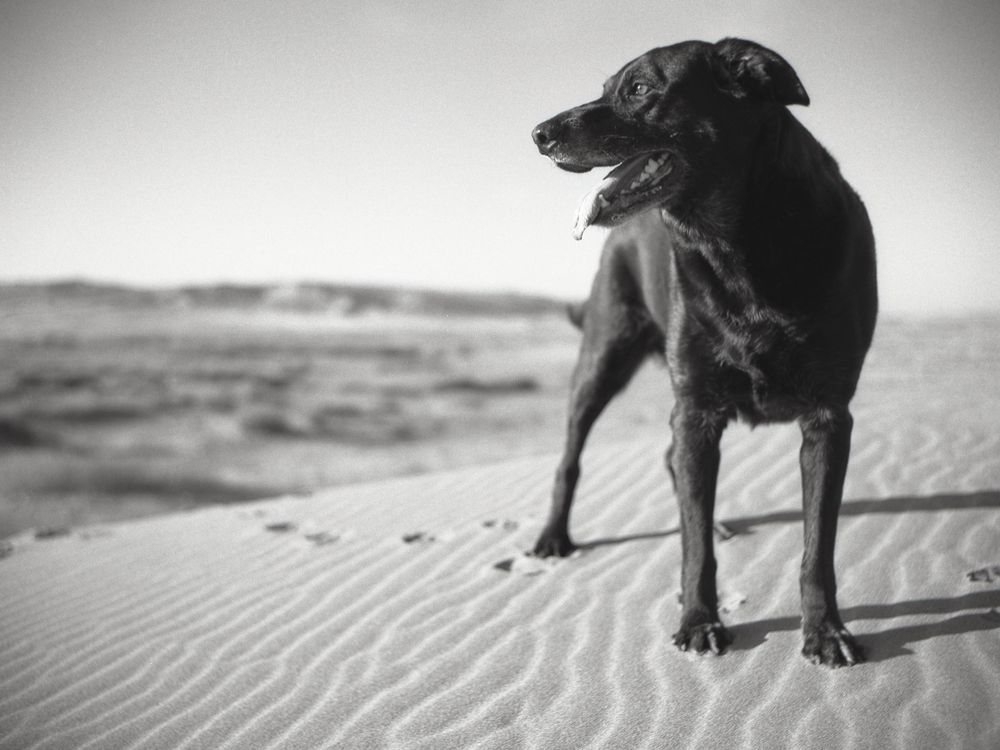 Sammy, the dog, at Brunneau Dunes, Idaho.