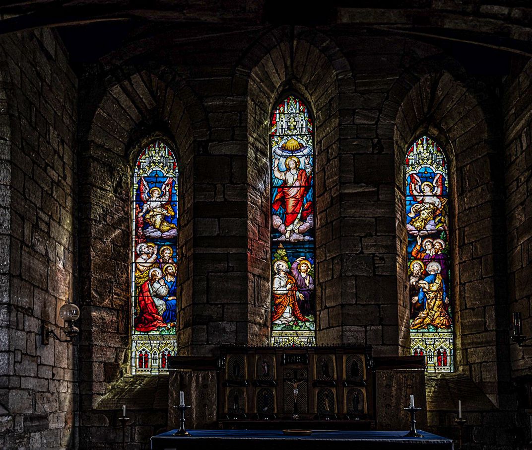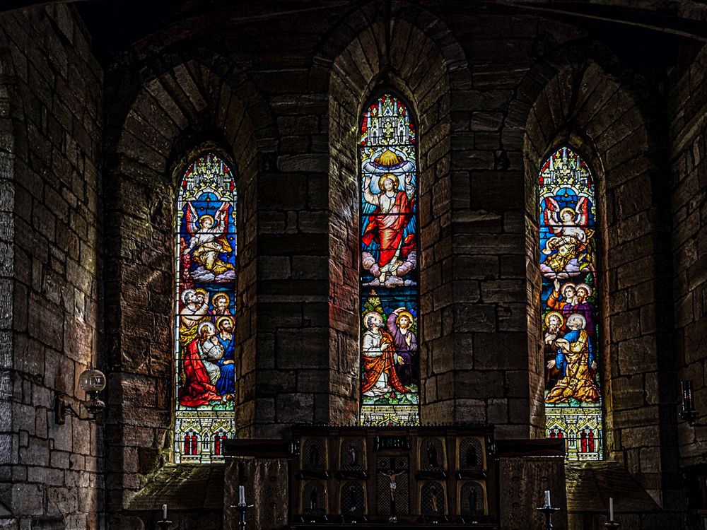 On Holy Island (Lindisfarne) Northumberland there stands a beautiful church with stunning stained glass windows.