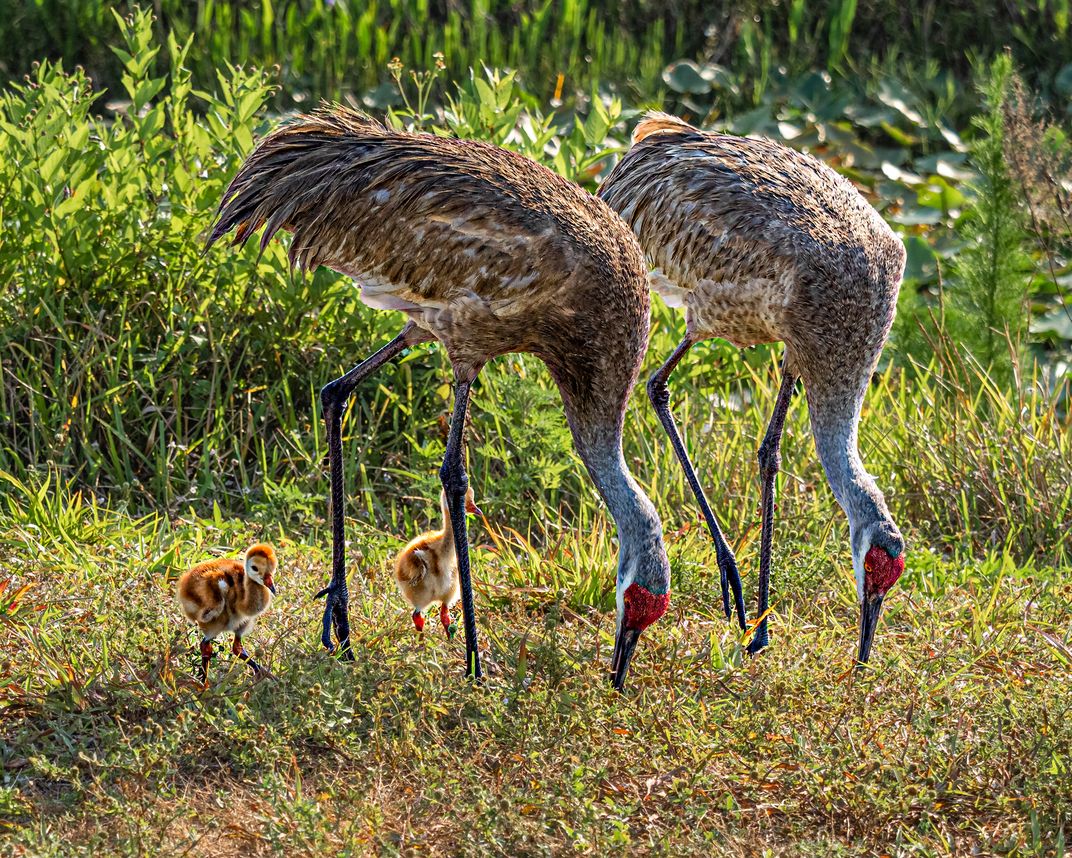 Sandhill Crane Family Having Dinner
