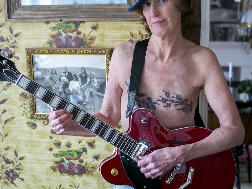 Musician, Sarah Burrill, is one of the many women I photographed for my new portrait series "Rise Above: Exploring the Many Faces of Breast Cancer on Cape Cod". Cape Cod has a 20% higher rate of breast cancer than the rest of the country which was why I wanted to explore this issue. Sarah was diagnosed with stage four inflammatory breast cancer at the age of 40. "I was in shock when I found out and did everything under the sun. I had two rounds of high dose chemotherapy and a mastectomy; I did herbs and glyconutrients; I even had myself energetically erased!" she exclaims. Sarah eventually had her other breast removed because she didn’t want to have reconstructive surgery and was tired of medical procedures. The tattoos she now has on her chest represent her connection to her sister, whose ashes are buried under the cherry tree in her yard and her mother, whose ashes are buried under the dogwood.