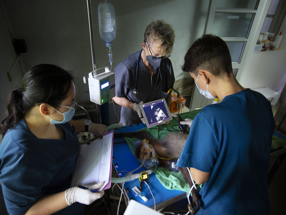 Vietnam is one of the leading wildlife trading countries in the world, now the government is working to change people's perception of consuming wild animals. In addition, the government also established many wildlife conservation and care centers. Image of veterinarians taking care of primates in Ninh Binh National Park.