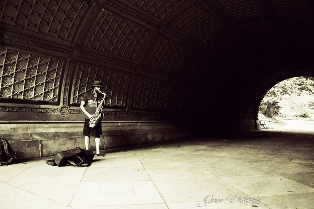 Musics in the air, This photo shows one of many of the unique street performers in NYC. This was taken in one of the underpasses in Central Park