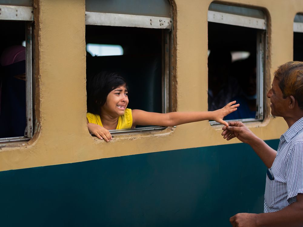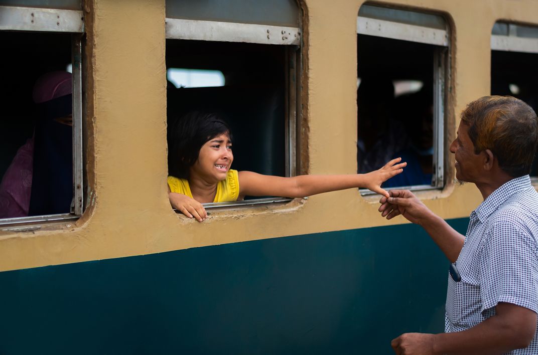 Saying good bye is the hardest thing ever. Tears in eyes says manything.