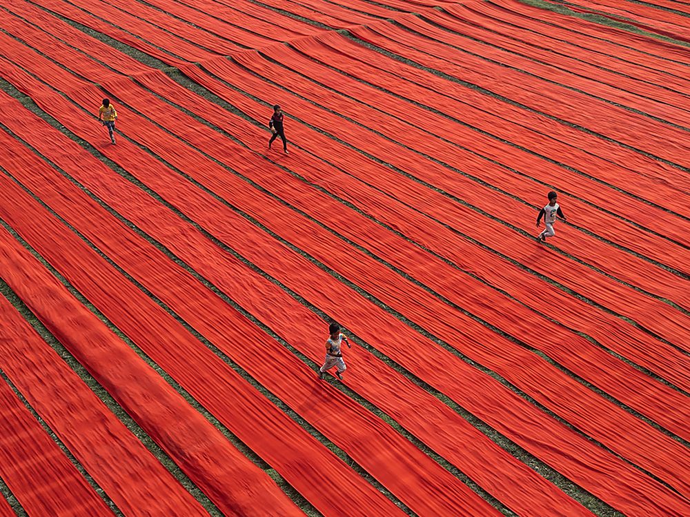Children dash through fields alive with vibrant red cloth, their laughter bubbling like a melody of pure joy. The scarlet fabric dances in the breeze, mirroring their boundless energy and the glow of youthful innocence. Each step they take seems to whisper promises of brighter tomorrows, as the world around them bursts with warmth and life. The scene is a symphony of hope—woven in the vibrant hues, carried in the laughter of children, and painted in the fleeting yet precious moments that remind us of the beauty of simple joys.
