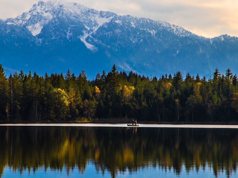 Der Schmutterweiher im Allgäu (Bayern) ist ein beliebter Badesee in dem man auch Fische fangen kann.