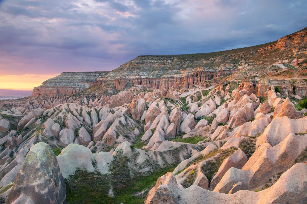 The soft volcanic tuff of Cappadocia has been shaped over millions of years by wind and water into these surreal formations. I captured this image at sunset, when the fading light brushed the rocks with soft pinks and oranges, adding warmth to the rugged landscape. The interplay of shadows and gentle curves gives the impression of a natural sculpture garden, carved patiently by time itself.