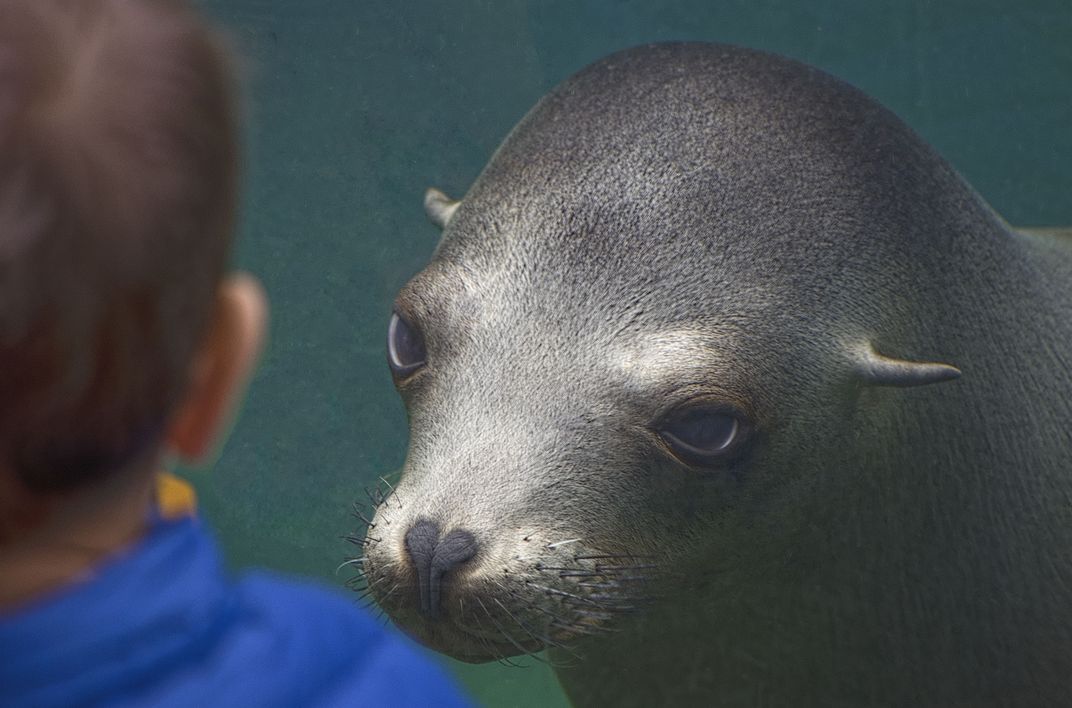 As a small child was looking at the sea lions, one of the sea lions was staring even more intently at the boy. I had never seen this behavior before.