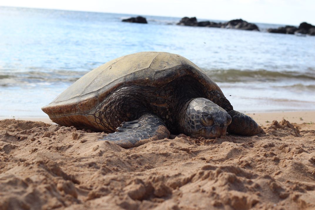 My family pulled over to the side of the main highway of the North Shore in Oahu. A large crowd of people were surrounding a small area on the beach. We had heard of the turtle sightings here at this beach and figured it could only be the turtles that people are looking at. Sure enough, the beautiful creatures were sunbathing in peace while onlookers stared in awe and respect.