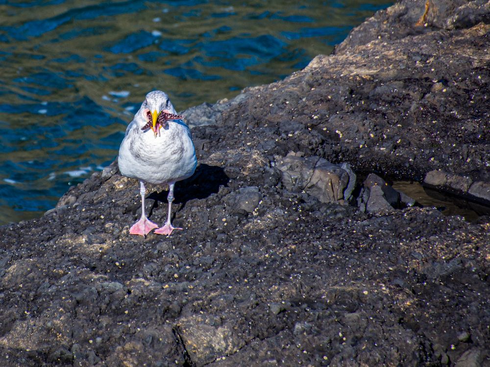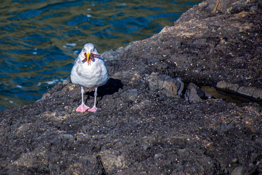 This seagull is sitting on a rock outcropping in Alsea Bay trying to figure how to eat it's latest snack.