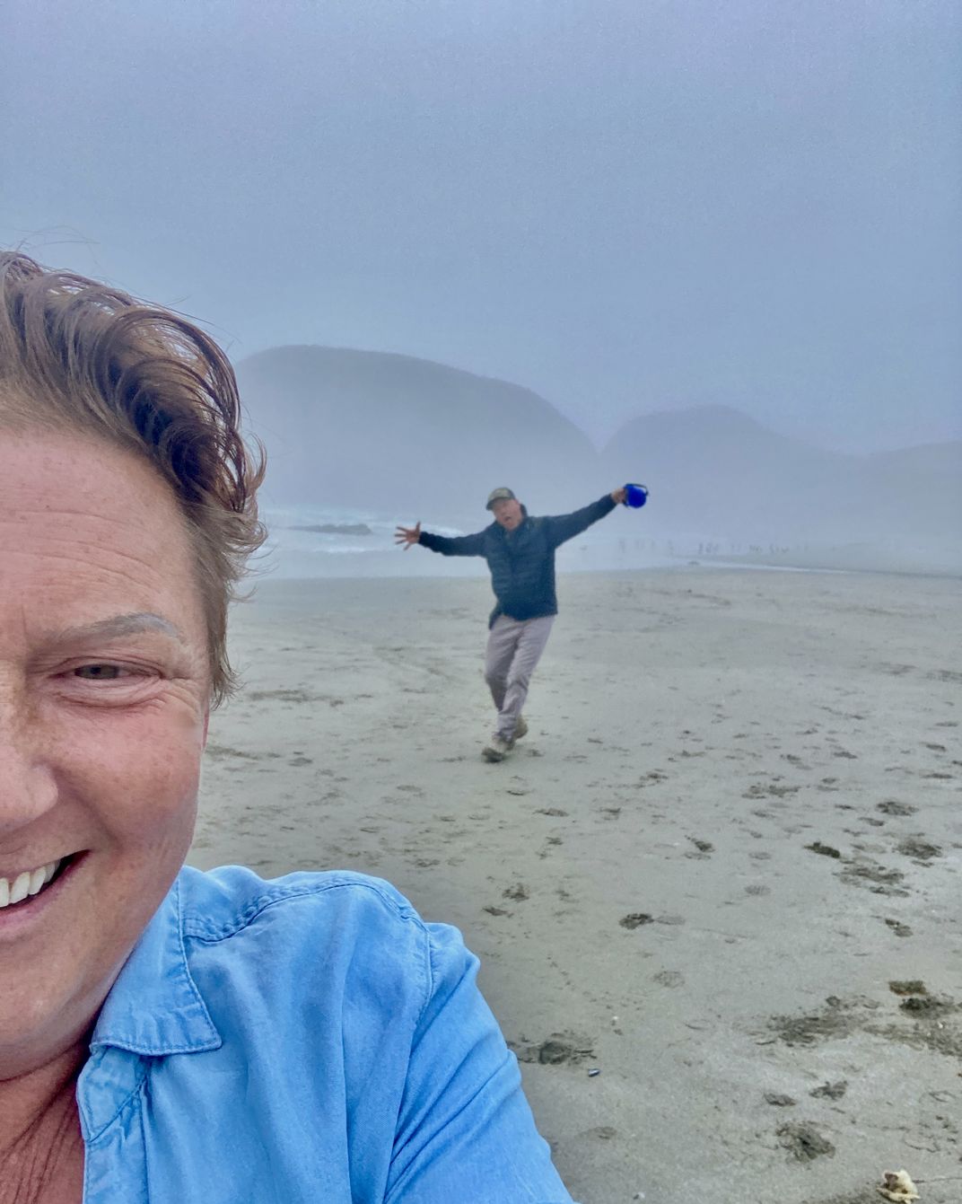 Photobombed by my husband whilst on the foggy beach