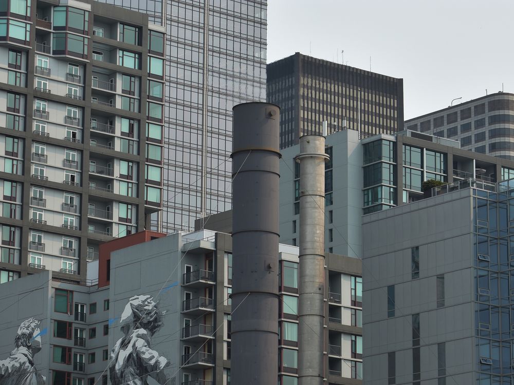 There is a lot of fun street art in Seattle and as you look up from the outdoor patio of the Pikes Market you can see this image on the buildings. I especially love architectural art mixed with other forms of art so this one definitely stuck out to me as a great image.