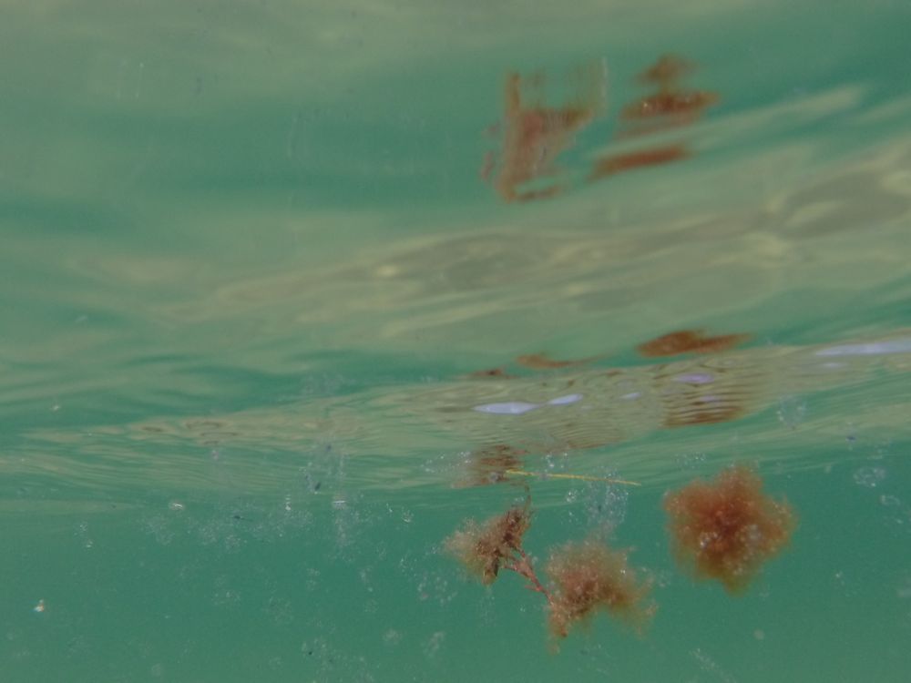 This is an underwater photo taken off the coast of Rhode Island in a year where there was a vast amount of fish eggs washing onto the shore.
